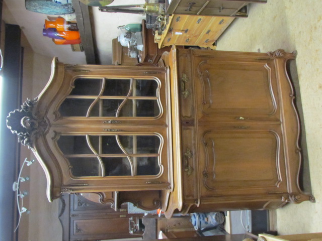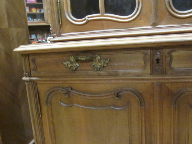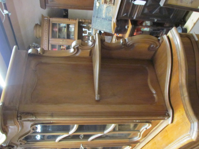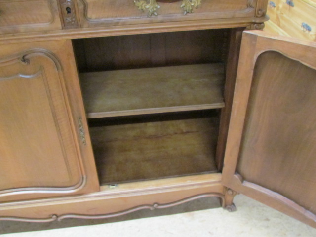 Nussbaum Büffet um 1900 im Stil Louis XV. Schönes kleines Buffet aus Frankreich. Es ist zum Teil aus Nussbaum gefertig. Oben befinden sich zwei einlege Böden, unten eins. Seitlich eine Galerie um schöne Dinge zu präsentieren .