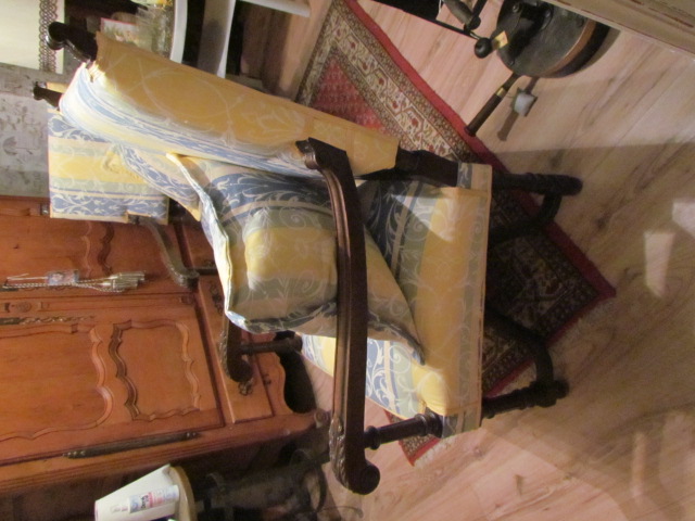 Sehr schöner Sessel aus Frankreich um 1880. Er wurde neu Bezogen mit hochwertigen Bezugsstoff. Der Rücken ist neu aufgepolstert die Sitzfläche wurde mit neuen Gurten versehen.