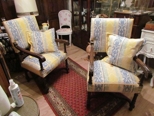 Sehr schöne Sessel aus Frankreich um 1890. Sie wurden neu Bezogen mit hochwertigen Bezugsstoff. Der Rücken ist neu aufgepolstert . Mit Kissen. Auch Einzel zu erwerben .