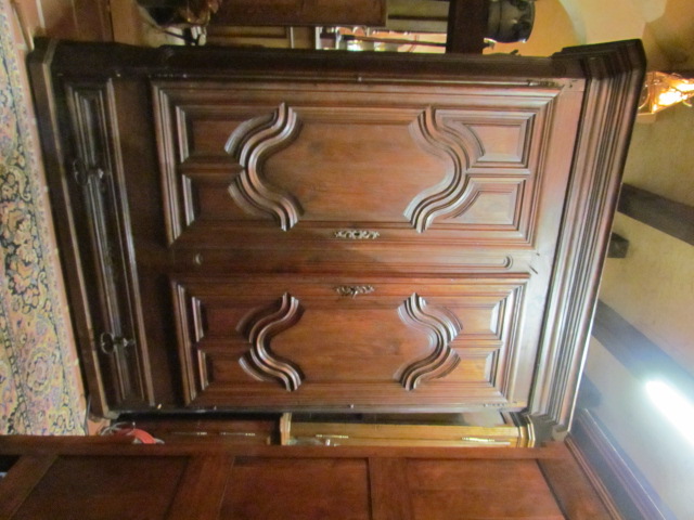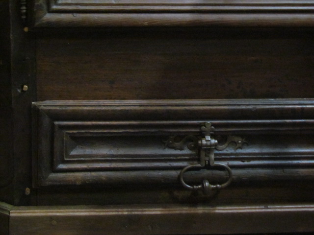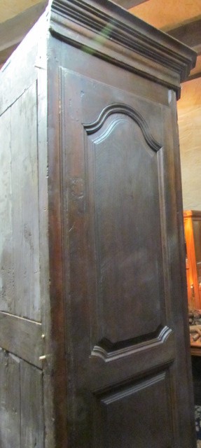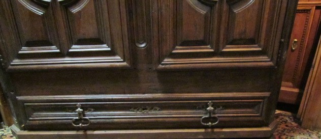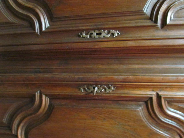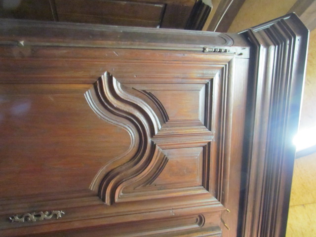 Repräsentativer Barock Schrank ein original aus der Zeit .Er ist Innen in der Schubladen Front Datiert in Römischen Zahlen 1667. Lesbarer Name Marc Poulain. Der Schrank ist für sein alter von 337 Jahren in einem guten zustand.Er wurde nur sauber gemacht und mit Wachs behandelt. Der Schrank ist mit seiner Tiefe von 80 cm außer gewöhnlich Tief.Er ist 180 breit und 230 hoch. Zum Bau des Schrankes wurde massives Kastanien Holz verwendet in einer sehr schweren Ausführung , die Füllungen Seitlich sind aufgesetzt.Die Beschläge wurden aus Eisen geschmiedet . Der Barock Schrank ist aus Frankreich aus der Region Nancy aus einem Bäuerlichen Herrenhaus.