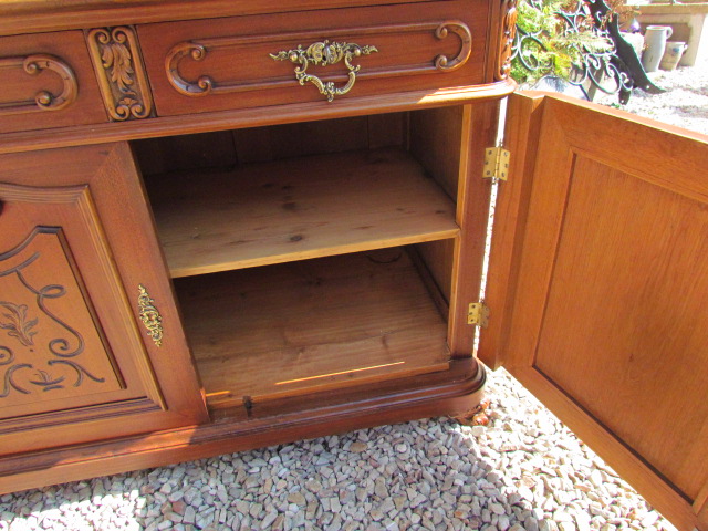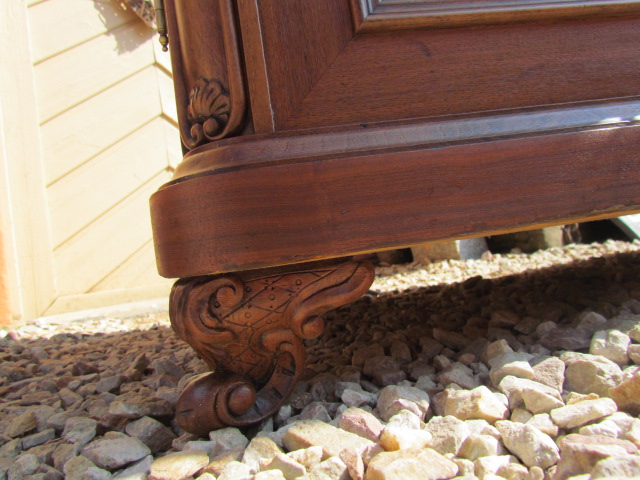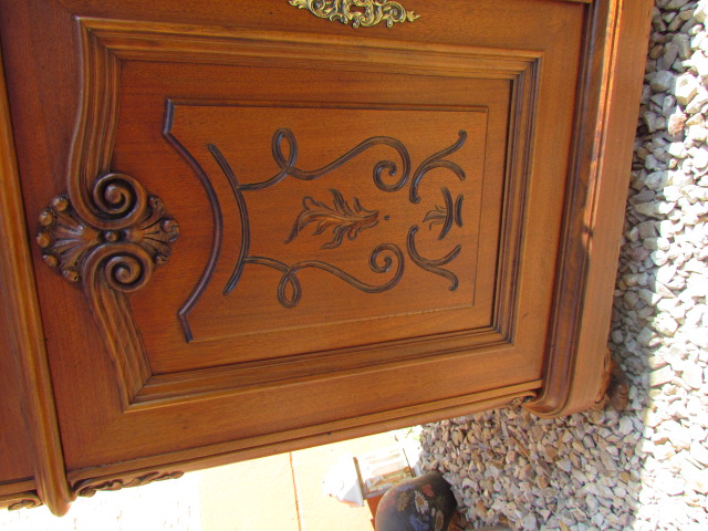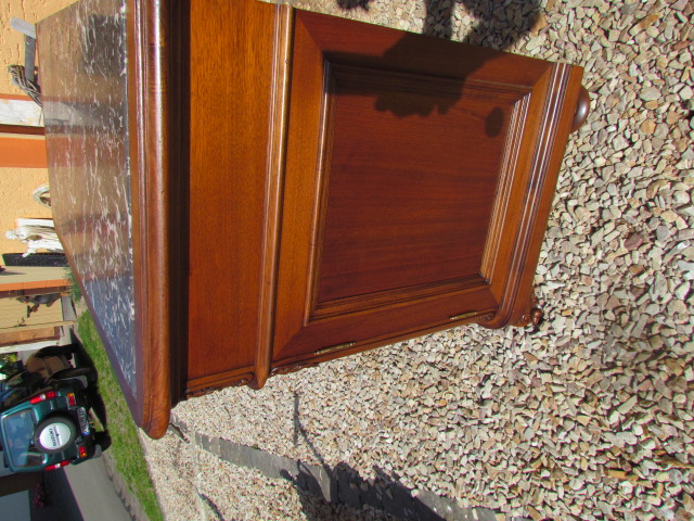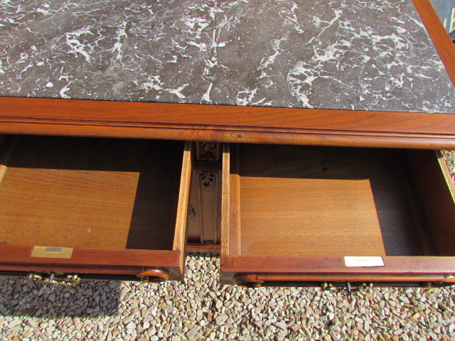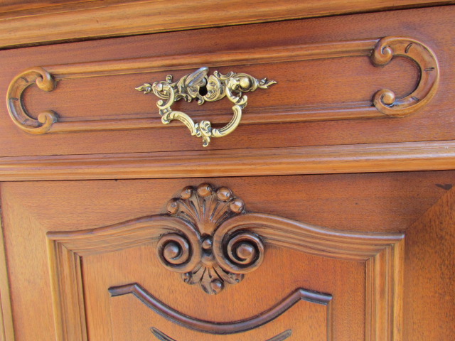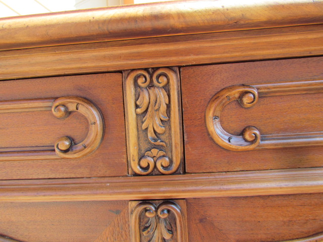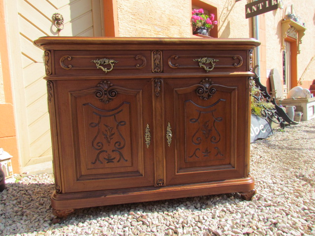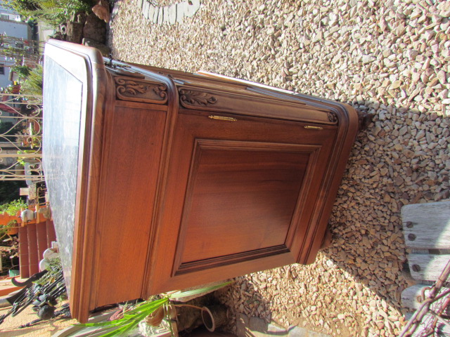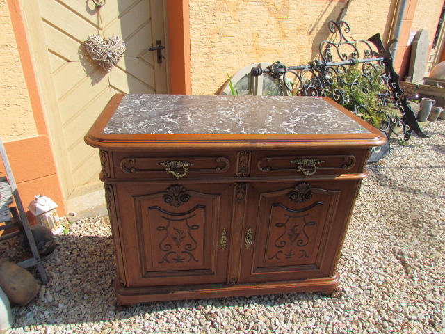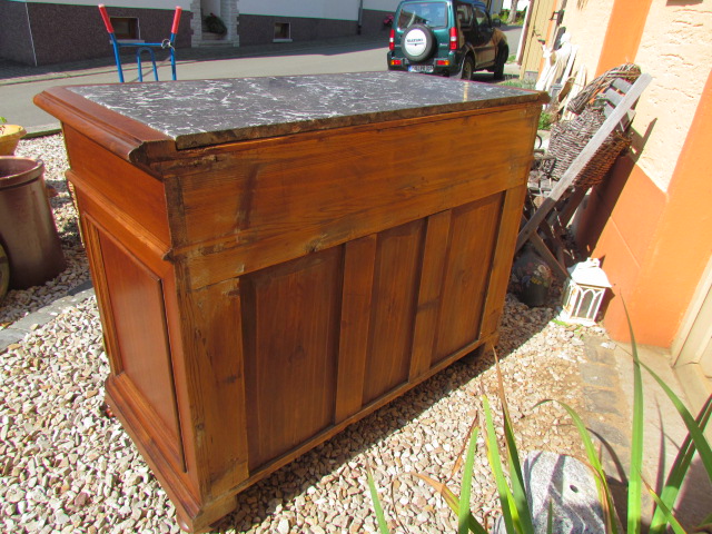 Halbschrank aus der Louis XV Zeit um 1870. Die Kommode ist Nussbaum. Die Beschläge sind original. Oben eine Marmor Platte in Schwarz Weiß eingelassen in einem massiven Nussbaumrahmen. Sehr schöne geschnitzten Füssen. Die Kommode ist Komplett restauriert innen sehr sauber . Sehr schönes Möbel Stück aus der Zeit . |