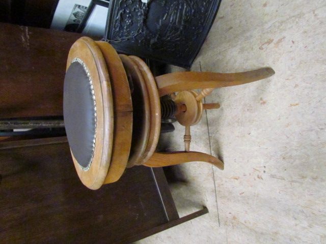 Grammophon um 1910. Alter Klavierhocker um 1920. Höhenverstellbar durch drehen der Sitzfläche, Die Sitzfläche ist neu mit echt Leder überzogen.
