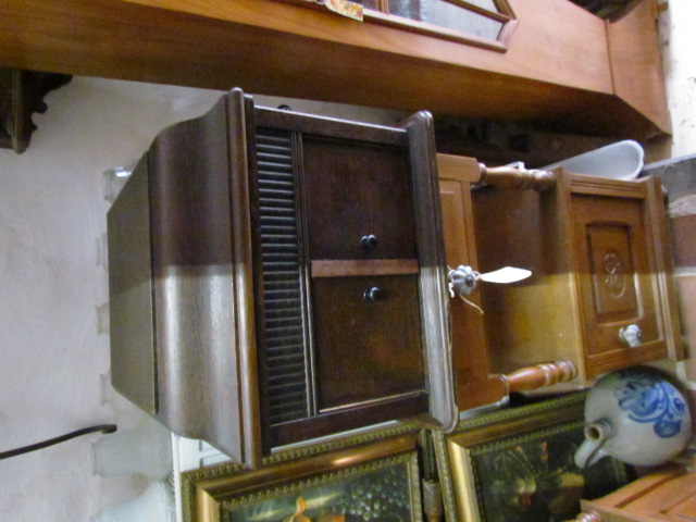 Kleines Nähschränkchen um 1910. Oben ein Staufach unten ein Kleidersack.