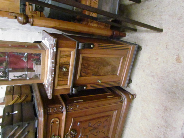 Nachtisch aus der Gründerzeit um 1890.Er ist Nussbaum furniert oben eine rote Marmorplatte.