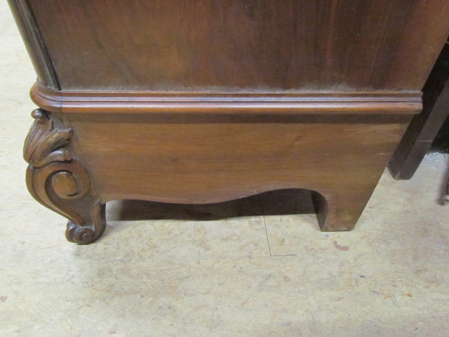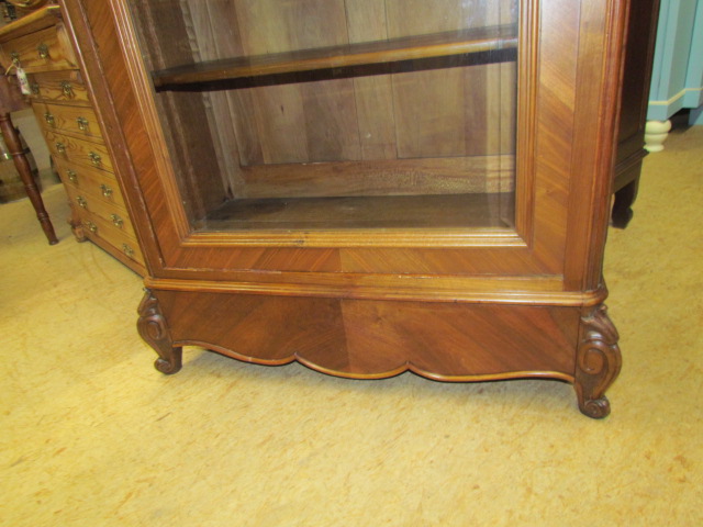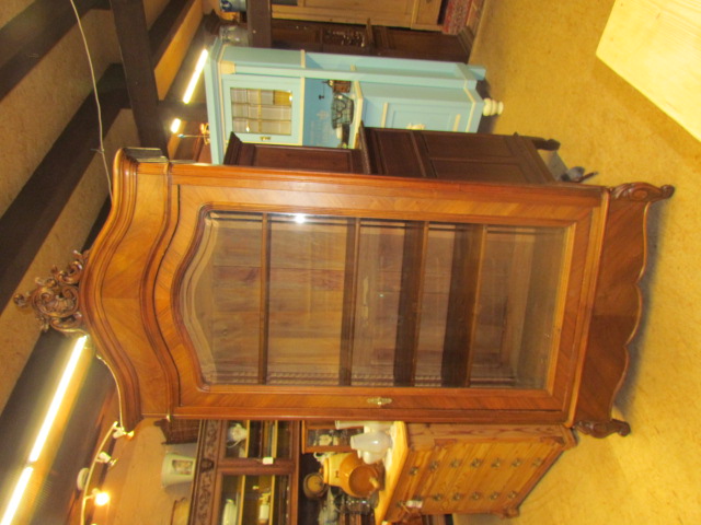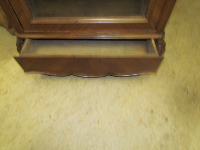 Vitrine Nussbaum furniert. Scheibe mit Facettenschliff im Sockel eine verdeckte Schublade.Die einlege Böden sind Variabel verstell bar.