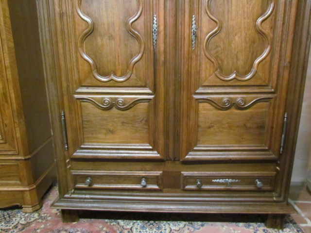 Elsässer Barock Schrank aus massiven Eichenholz.Sehr schön die aufwendig gestaltete Türen .Die Beschläge sind aus Eisen und original.Unten zwei Schubladen eine zum abschließen.Die Seiten haben vier Kassetten .Das Innenleben wird nach Ihren Wünschen eingebaut.Der Schrank ist Wohn fertig restauriert.