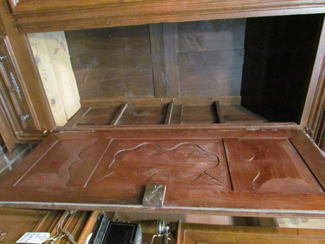 Großer Barock Schrank aus Frankreich. Der Schrank ist aus massiver Eiche und in Lothringen gefertigt. Sehr schöne Schnitzereien im Mittelteil und oben,Unteres Abschluss Brett in Wellen ausgeschnitten.Die Beschläge und Scharniere sind aus Messing und original.Die Ablage Bretter werden nach Wunsch eingebaut. Der Schrank ist Wohn fertig restauriert.