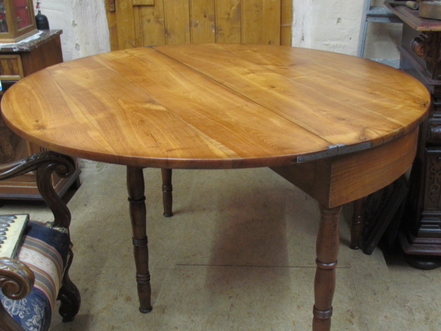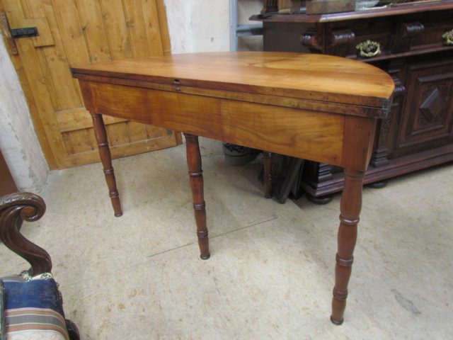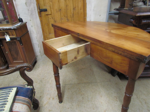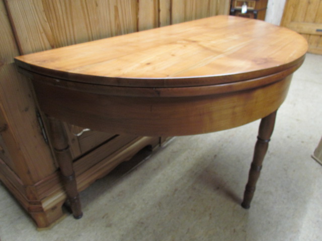Halbmond Tisch aus massivem Kirchbaum um 1840 im Biedermeier Stil. Wohnfertig restauriert. Auf geklappt 130x77 cm Als halber 130b.x65t.x80h.