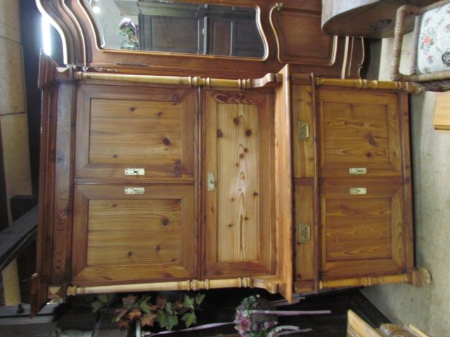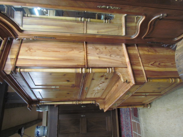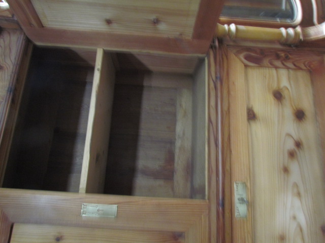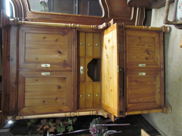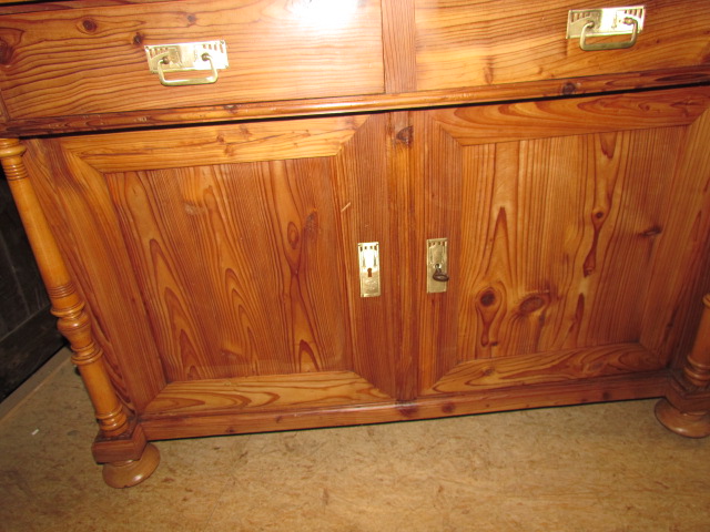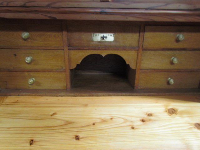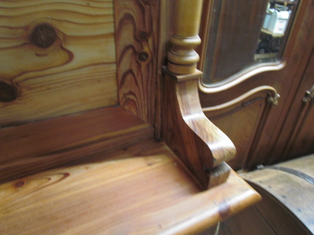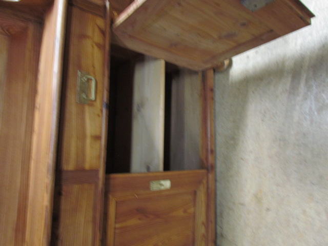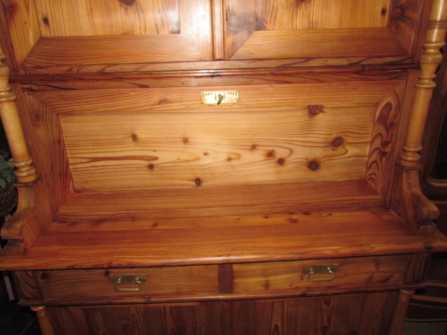 Aufsatz Sekretär aus Douglasien Holz.Er ist aus der Zeit der Gründerzeit übergang zum Jugendstil ca. 1890.In der Mitte ein Schreibfach in Eichenholz.Sehr schön sein rötliches Aussehen das an Kirchbaum erinnert.Er ist restauriert und in einem Wohnfertigen zustand.