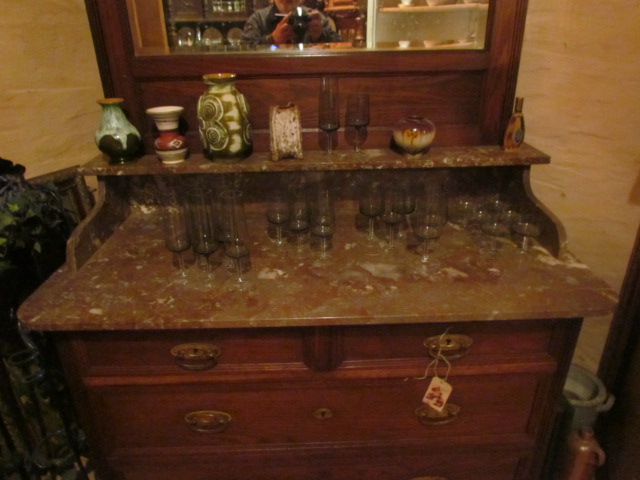 Kommode in massiver Eiche .Mit einer schönen Marmorplatte.