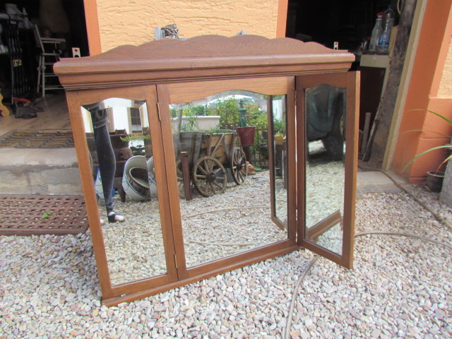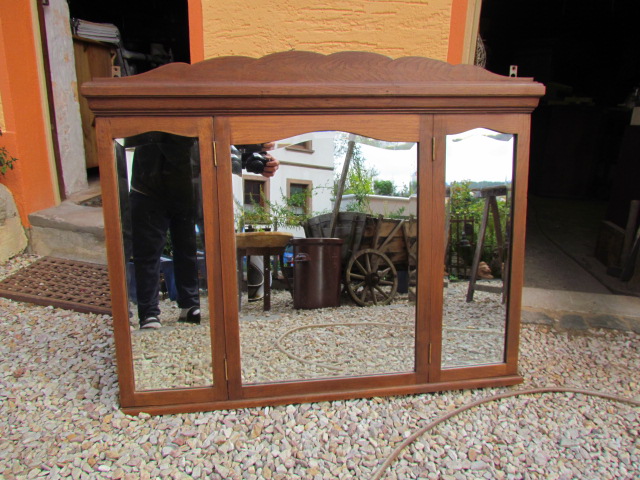 Wandspiegel aus der Jugendstil Zeit. Der Spiegel hat einen Fassettenschliff. Er ist dreiteilig , die Seiten sind Klappbar. |