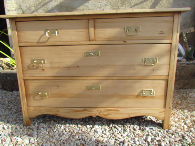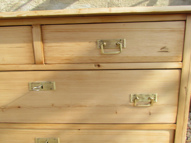 Sehr schöne Kommode aus der Jugendstil Zeit ,in Weichholz. Die Beschläge sind original aus der Zeit. Sie wurde restauriert, die Oberfläche ist gewachst.