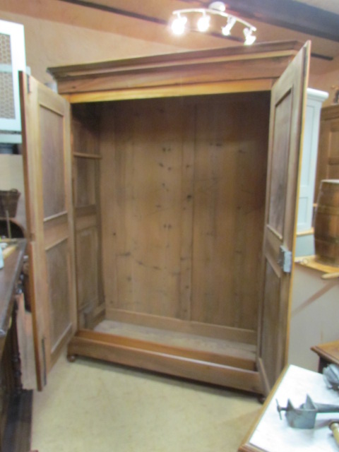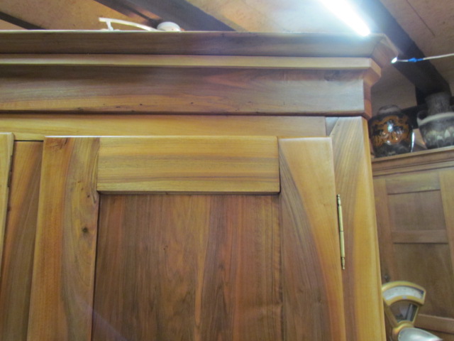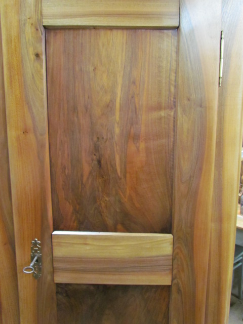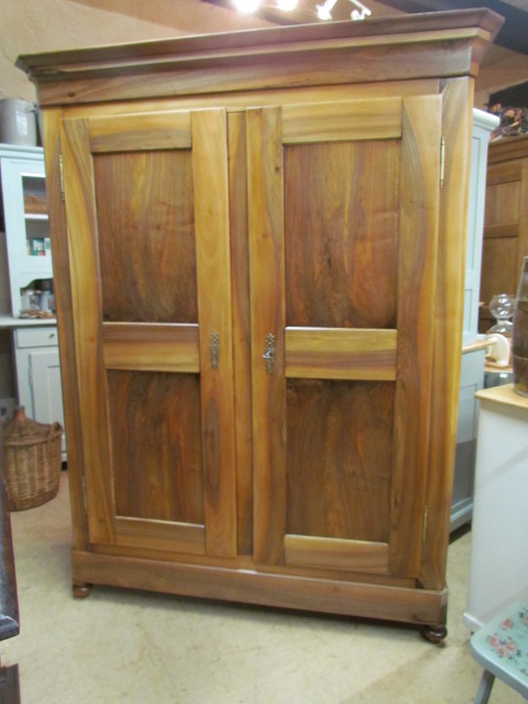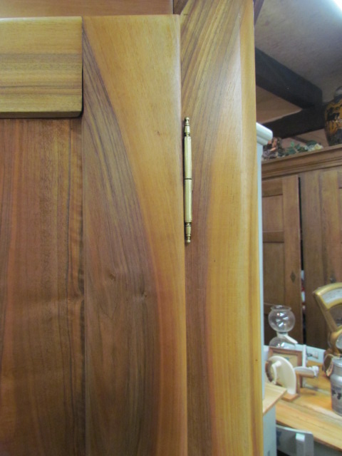 Massiver Nussbaum Kleiderschrank aus Frankreich.Beschläge original.Restauriert. Sehr schöner klassischer Louis Seize Schrank .Die Seitenkanten sind abgeschrägt, die Türen und Seiten habe jeweils Zwei Füllungen. Innen ist ein Einlegeboden und eine Kleiderstange.Der Schrank ist zerlegbar und mit Holzspangen Verkeilt.