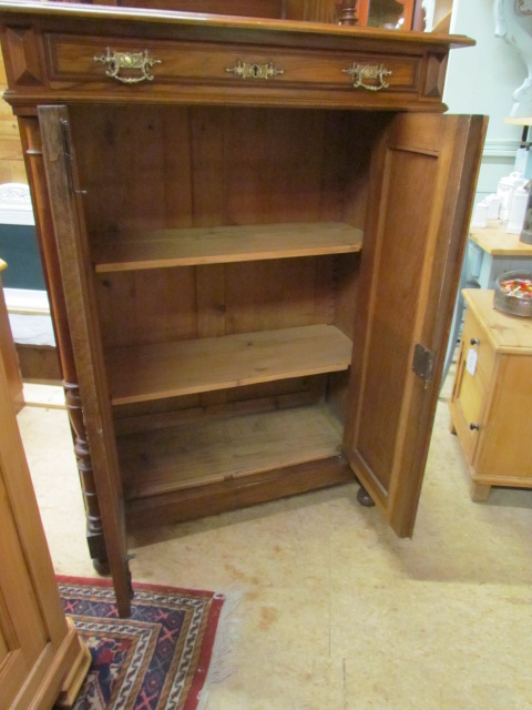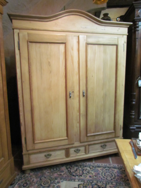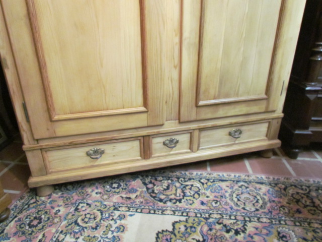 Weichholz Schrank aus der Jugendstil Zeit um 1900 .Wohn fertig restauriert. Er hat Zwei Türen geteilt durch ein Mittelbrett. Unten drei Schubladen die Beschläge sind original.Die innen Einteilung wird nach Ihrem Wunsch eingebaut.