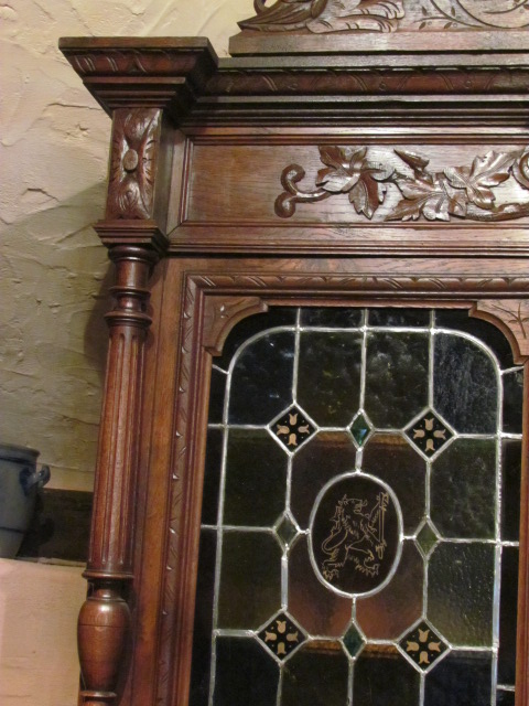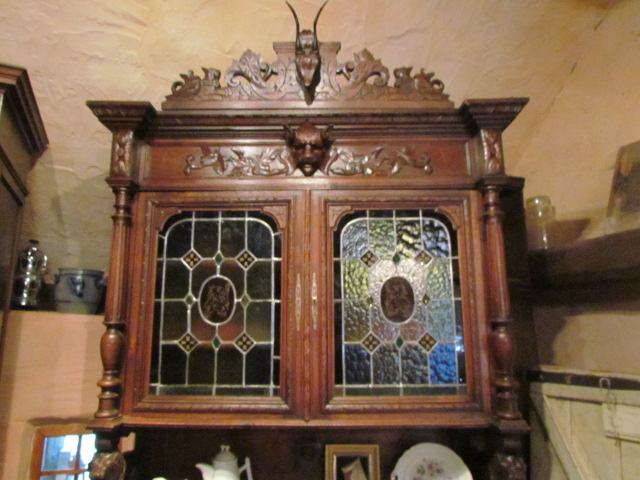 Französisches Buffet im Jagt Stil um 1880.Mit sehr schöner Bleiverglasung. .Gefertigt wurde das Buffet aus massiven Kastanienholz.